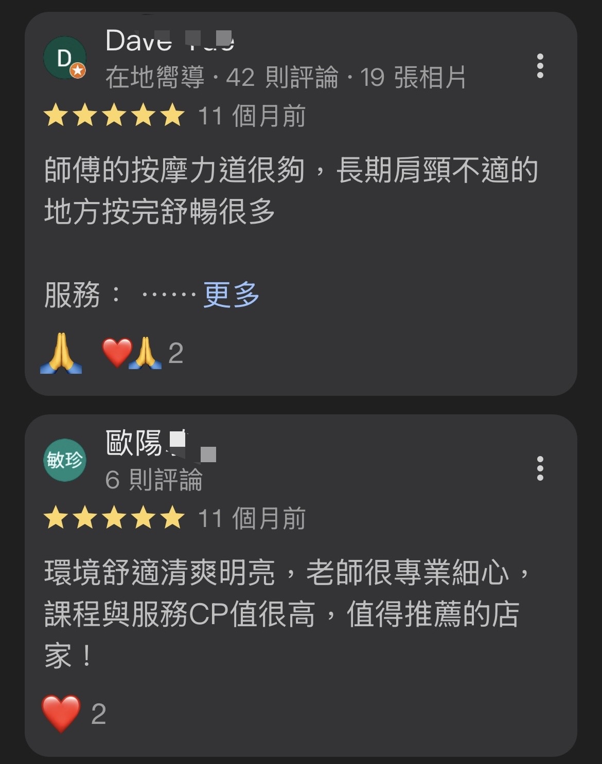 「她的手真的有溫度,不只是療癒。每次做完都覺得被理解、被照顧。做了三次後整個人變得更亮、也比較容易生長了!」